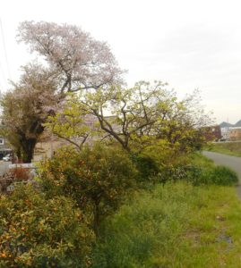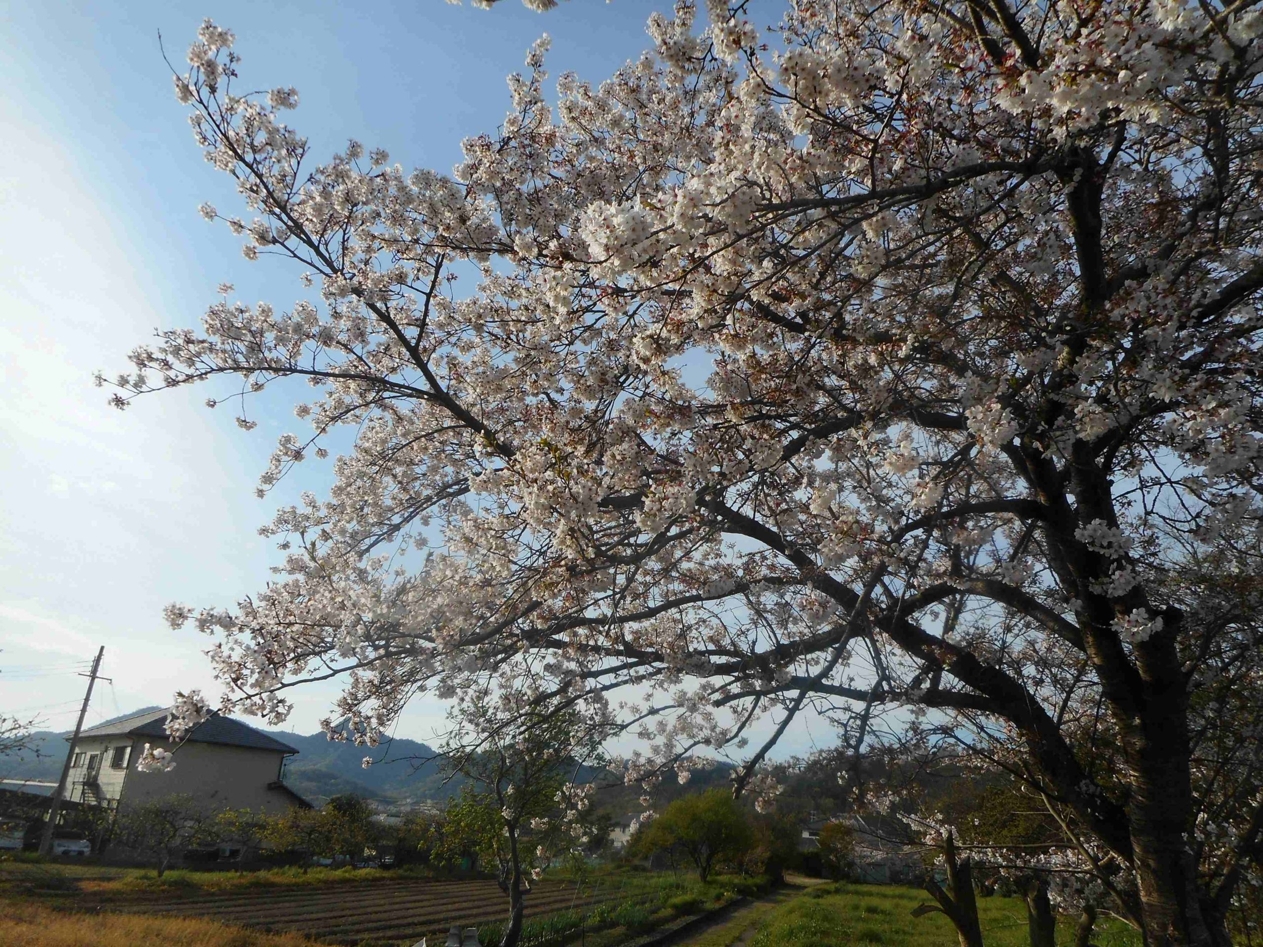 昨日のニュースで青森県の最北端の桜と北海道函館から桜の開花宣言が届きました前線が北海道にと届くまでここ播州の桜はもっているのですよ。すごいですね。水不足で鍛え上げられた花は3週間近くもっているのです。下の写真は高い木の桜の花と柿の木の若葉です。春たけなわとなってきました。いや、春から初夏の装いとなるのではないでしょうか。ただ、花は桜だけではありません。知らない花がイッパイです。白い花は梨だそうです。赤いのははなすおう。グーグルさん大活躍であります。華蘇芳の濃いピンク、印象的な色、あまり見ない色で目が釘付けでした。柿の若葉の色も惹かれるなと思っていたら、山の色がかすんだ若葉色でした。