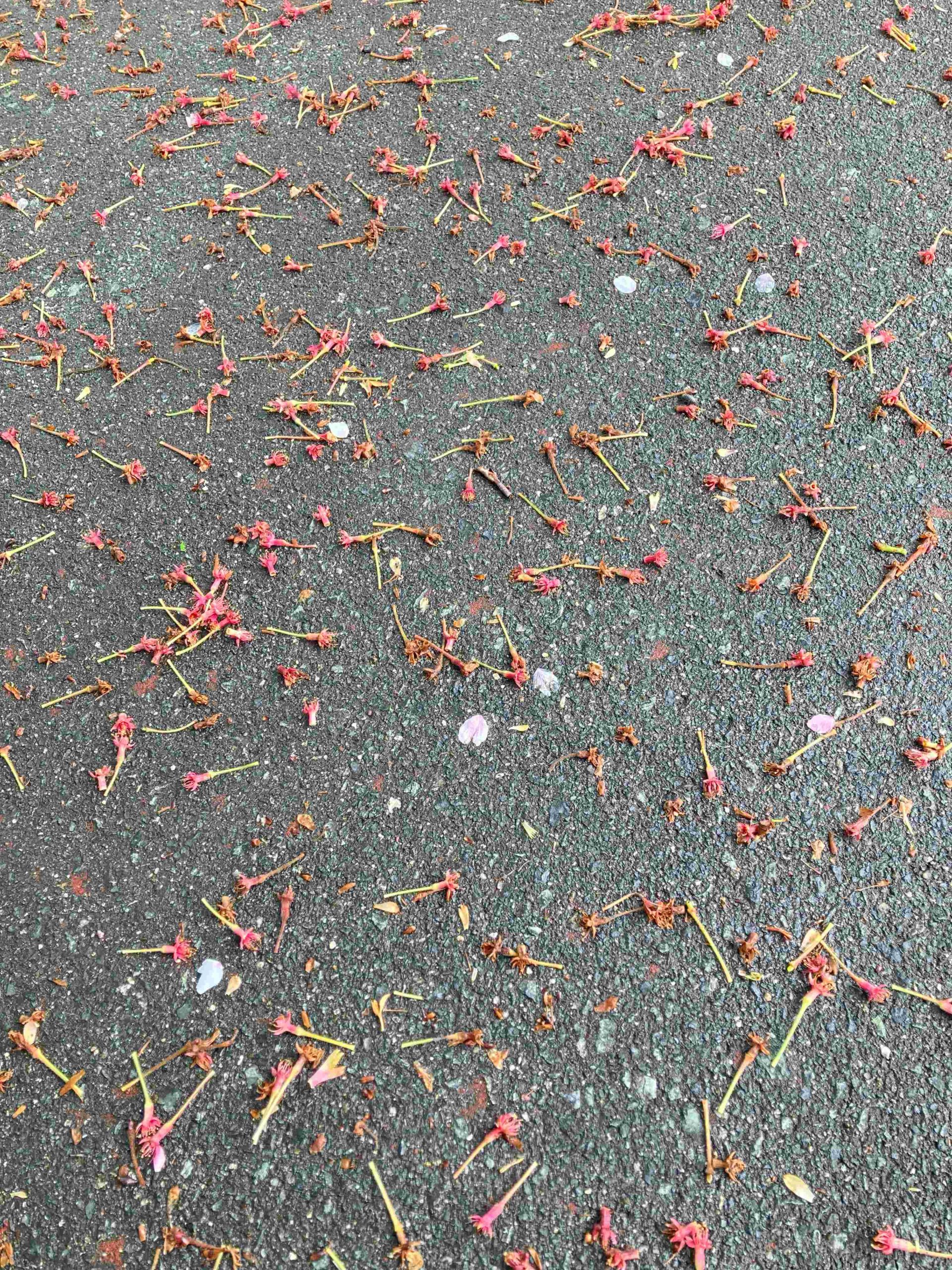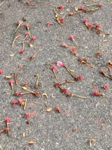 映画「世の中にたえて桜のなかりせば」で桜の花はみんな下を向いて咲いてくれる。だから、人は満開の桜を見えげることができる。そんな話がありました。それは桜の花の柄がとても長くて花は下を向いてくれるのだ。ということ報告しましたが、その柄がみんな落ちて桜は葉桜になりました。桜並木を歩くと、たくさんの柄がクッションになりふわふわした感じがします。春のような感じでしょうか?散った花弁が水たまりに浮いているのはとても好きなのですが、今年は見かけませんでした。よく滑るので、気を付けないといけません。葛の蔓が延びて風にゆらゆら揺れている景色が見られるようになりました。早いものは、つかまるものに絡み始めましたよ。