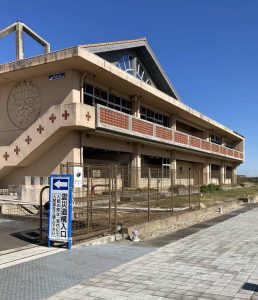 次に、山元町の中浜小学校へ向かう。ここでは、10メートル強の津波が押し寄せ、2階の天井まで届いていたとのことであった。先生方は震災直後、10分で10メートルの津波が押し寄せると情報を把握され、避難地までは20分かかるので10分では間に合わないと思われた。10メートルならば、地上げの2メートル、1階4メートル、2階で8メートルなので、屋根裏部屋ならば助かる可能性があると校長先生は判断され、仕方なく、垂直避難を決断されたとのことでした。普段から、津波避難地まで距離があることを理解され、会議で話し合われていたからこそ決断が早く実行されて、情報通りの津波の高さだったからこそ助かった。と説明された方はそう言われていました。決断したときの校長先生のVTRが残っており、「最後90名が屋上に上がり2階への通路の蓋を閉じるときの感覚は忘れられません。」とのことでした。現実は、津波が押し寄せるまでの時間は20分以上あり、これで助からなければ判断ミスと言われても仕方がないと考えられていたようです。津波が押し寄せた夜は耳元で波が当たる音がして恐ろしかったということでした。この一晩がどれほど恐ろしくて長い時間だったか想像するだけで身がすくむ思いです。ここでは、正確な情報の大切さと、判断することを事前の話し合いをして、教職員の間で意思の疎通を図っておくことが大切だと言われていました。当時、翌朝、小学校の屋上からたくさんの人が手を振っていたのがこの小学校です。また、現場の掲揚柱は津波の高さになっているとのこと、掲揚中の下に行くと、10メートルの高さに改めて驚き、恐怖を感じました。