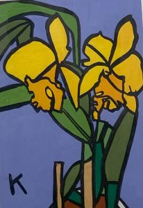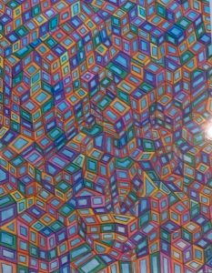 この絵画教室は毎月2回、続けてこられたということです。最近は保護者の方々が自主的に運営されているとのことで、この19年間続いてきたということはすごいことです。続いてきたことに拍手です。教室に見学にも、以前行かせてもらいました。8名~10名ほどの方が土曜日の午後集まって取り組まれています。この会の中でしか描かないという方もおられるようですが、休みの日や夜にも描いておられるとのこと。会場である作業所ではマイペースで作業をし、終了の時間が来たらぼちぼちと作業を終え、お茶とお菓子の時間を共有し、その時お互いの今日の取り組みを見あいます。このような毎回の積み上げが続きます。会では意識していないようで、お互いしっかり意識しているようです。(お母さん方の弁)また、居心地の良い時間になっているのだろうと思われます。嫌だったら続かないですよね。ブリコラはりまで紹介している藤木さんと森さんの新作を紹介します。