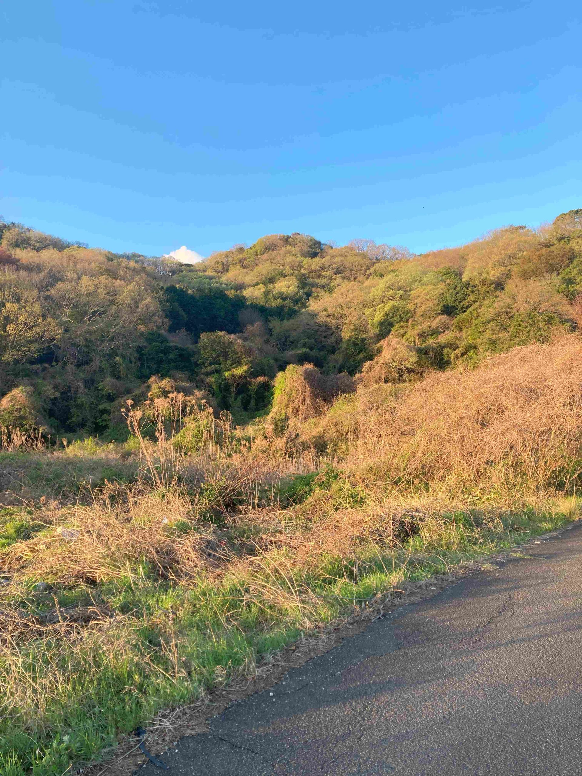山の色は新芽が芽吹きだしたのでしょう微妙に色の変化をしはじめました。それが春の日差しに照らされて、春の色になってきました。秋とは違う中間色です。