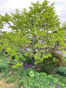 でも、5時過ぎには空は白々し、東の空をオレンジに染めていき、強い日差しをパーと照り付けます。先日のパーっとした日差しですがあげておきます。それに照らされる新葉は鮮やかです。特に柿の葉はまぶしいくらいです。