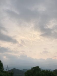 早朝、雲の中をジェット機が