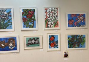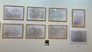 11日(火)~16日(日)に加古川の松風ギャラリーで開催されている余暇の作家展に行ってきました。覗かせてもらって4回目になるでしょうか。20回続いている展覧会です。ということは、参加者の皆さんが2週間に一度集まり絵を描き続けて20年以上になるということですね。すごい。この続けるという情熱は、大きい火ではないかもしれないけれど、生活に根差した炭火のような感じでしょうか?描くことが当たり前のように内から滲み出す熱さを感じます。保護者の方と話をしていると絵画教室での活動、それぞれが積み上げられて作品作りの中で生かされているのだということです。毎年新しい題材が入ったり、画材が少し追加され新しくなったり、経験を生かして表現が豊かになったりしています。作品を見せていただいて「負けとられん。」と思うのであります。静かにそう思っています。