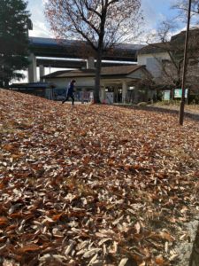サクサク落ち葉の上を走る