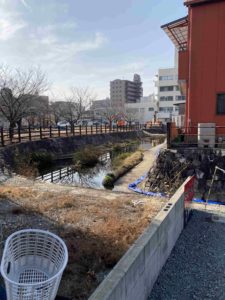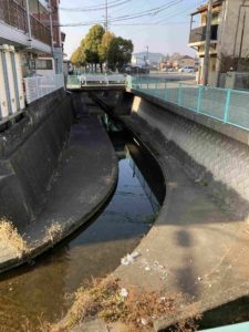 姫路城外堀川はお城の南東にある辰巳橋あたりで北上していきます。その辺りで播但線から少し離れ、外堀公園で右に折れ、左に折れ国道2号線をくぐり、さらに北上し、中学校の東側、外京口門跡を北上、小学校の西側を北上すると竹之門にあたります。この門は今でも国道372号線にあり、京都の方へ向かう玄関口だったのでしょうか。地図で確認しながら読んでいただくと楽しいかなと思います。外堀川はこの竹之門で左に折れ、五軒邸の北側を西へ、そして五軒邸北の交差点北辺りから北西の方向へ同心町を通り、野里堀留町へ向かうのでした。この辺りになると外堀川というより溝というような感じがしますが、昔はもっと大きかったのかもしれません。この辺りは子どもの頃よりウロウロしていたので知っているつもりでしたが、外堀川のはじまりを堀留町で確認したのは初めてのことでした。外堀川の変化を確認することが出来たのもです。